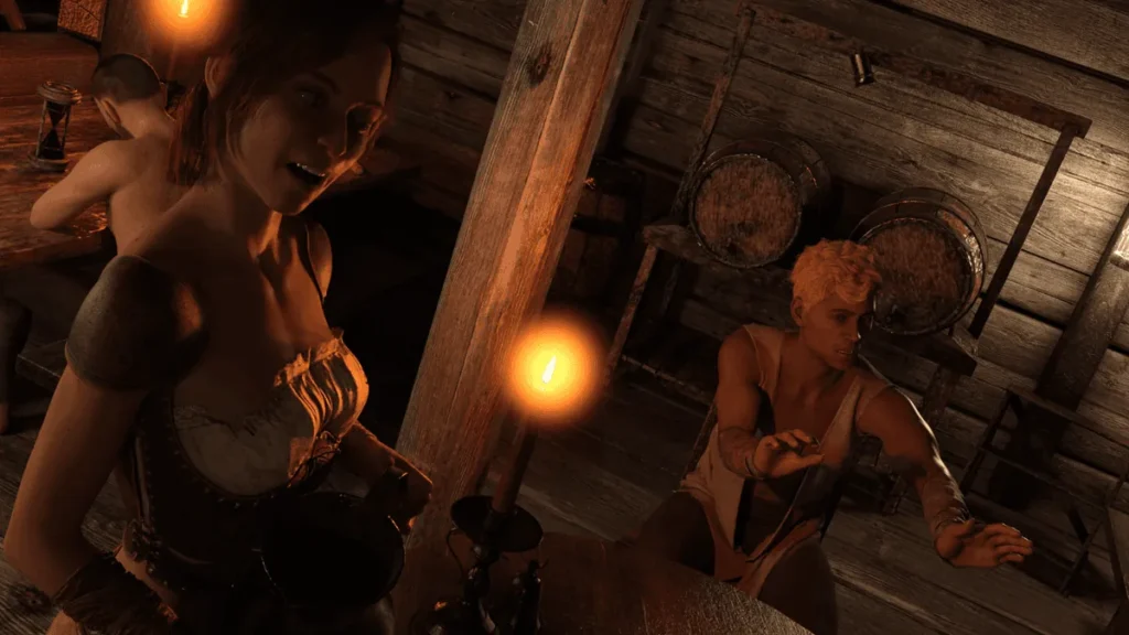 Second, deep character customization goes far beyond looks. Your skills in Persuasion, Intimidation, Lore, and Combat directly affect available dialogue, the success of certain actions, and even how intimate moments play out. A character with high Lore might understand a relic’s significance, unlocking a seductive scene with a scholar. A character built for pure Combat might resolve the same situation with a threatening display of force that attracts a different kind of partner. Your build truly defines your story.